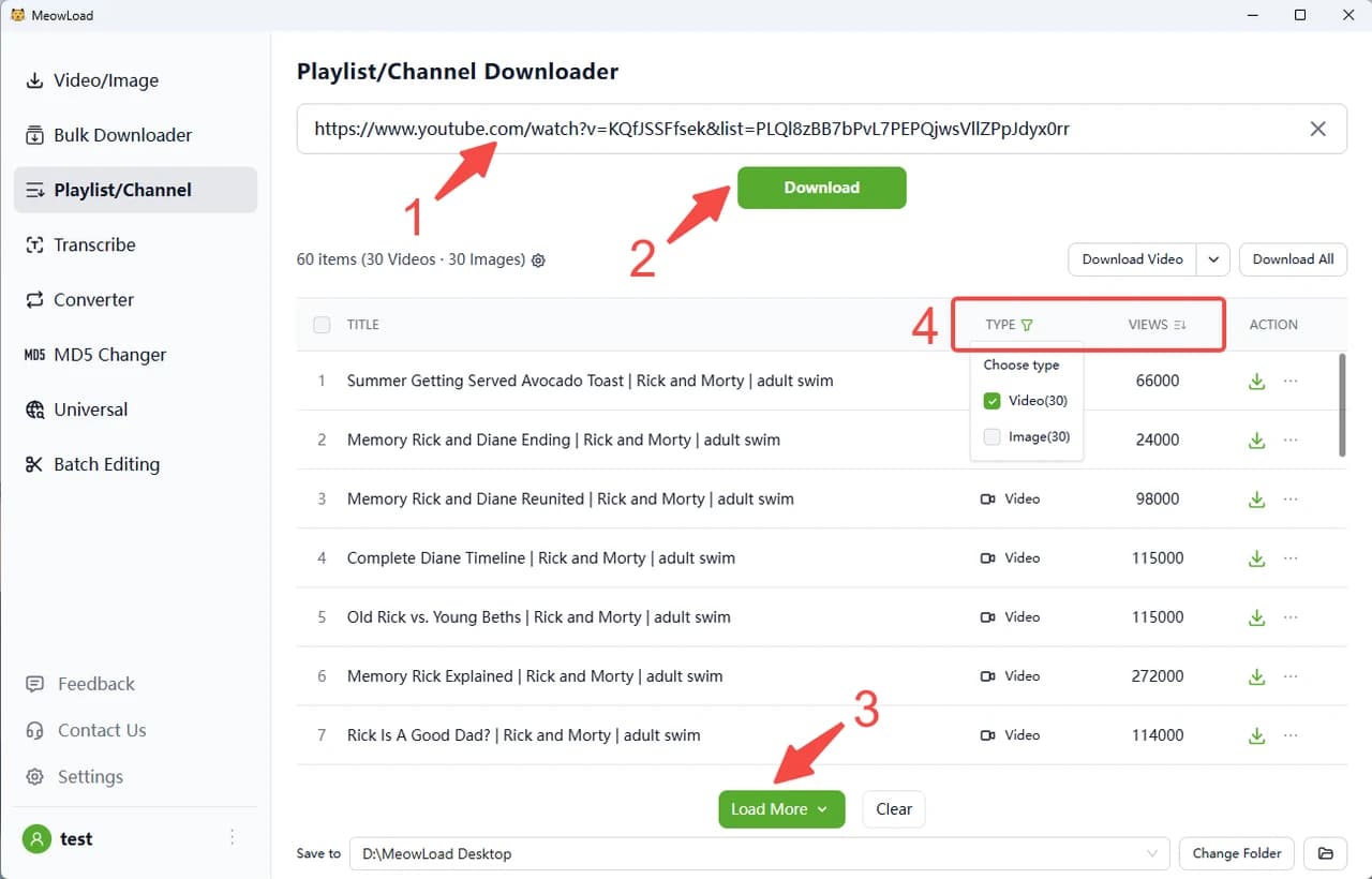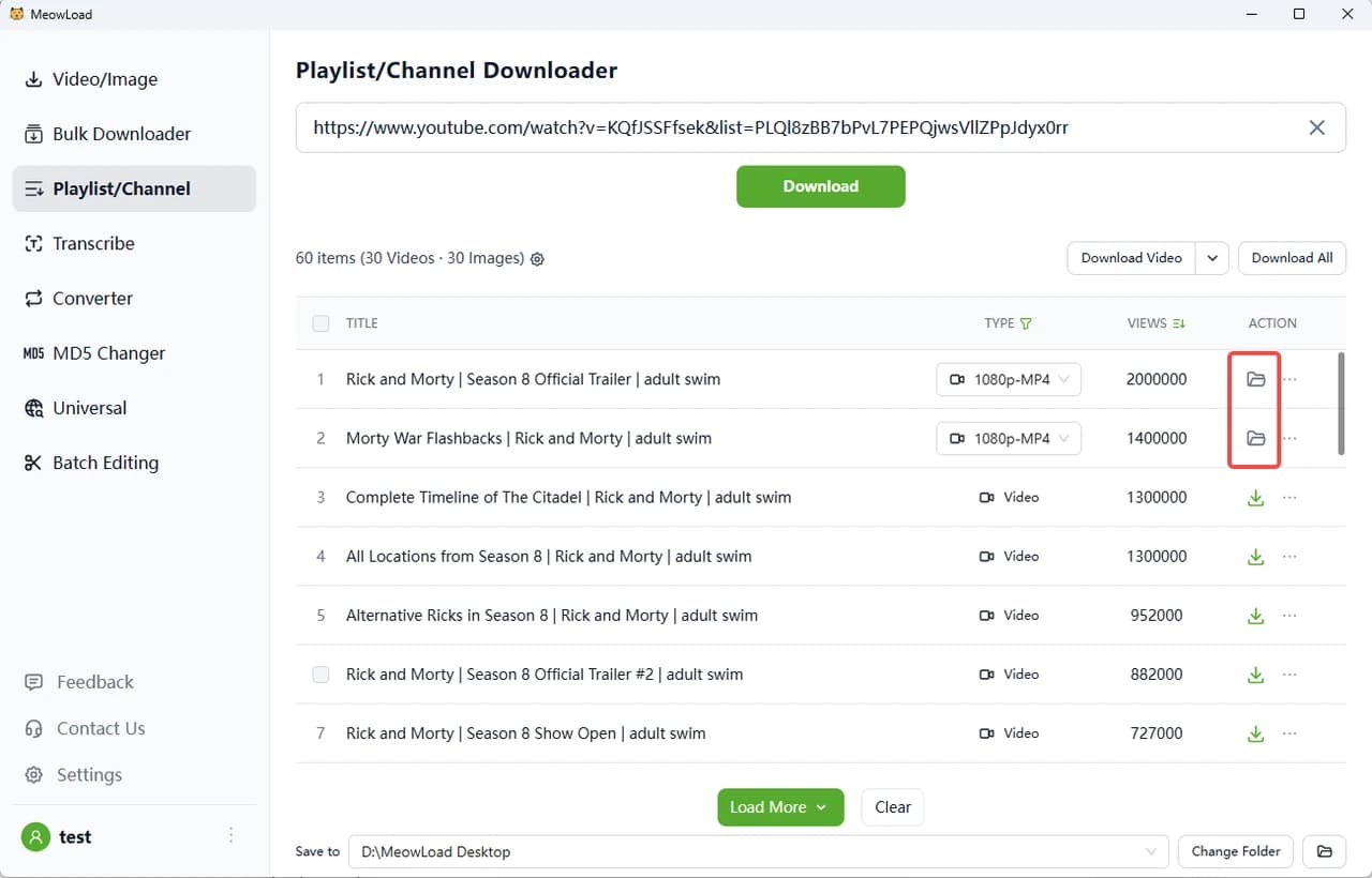 通过 哼哼猫 ,你可以将完整的 YouTube 播放列表批量下载到电脑,支持多种格式和分辨率(包括高清)。操作步骤如下: